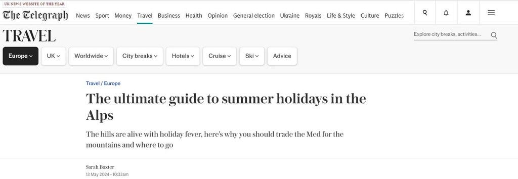 Santa Maria Maggiore sempre più superstar della stampa internazionale: il Telegraph, nella sua versione online, ha dedicato un post alla località vigezzina, inserendola tra le mete da non perdere per l'estate 2024 tra le Alpi.
