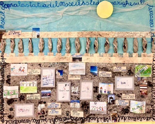 Da qui la creazione del manifesto che ha coinvolto tutte le fasce di età (3, 4 e 5 anni) della scuola: un cartellone, su cui sono stati incollati i disegni dei bambini ed è stata riprodotta la Terrazza del Mosè.