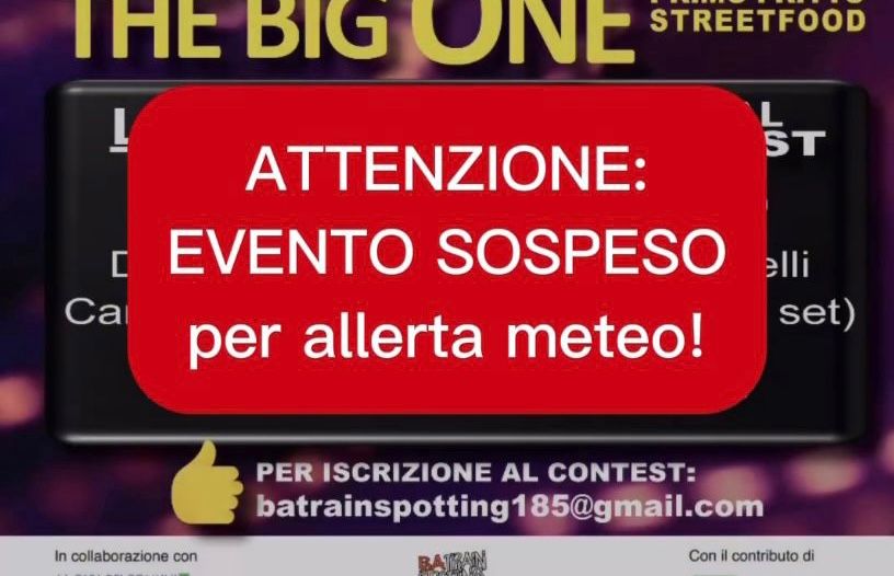 L'allerta meteo per sabato sera fa saltare "The Big One". L'evento che doveva tenersi al parco De Curtis a Sant'Anna viene sospeso per sicurezza: si temono infatti piogge per la serata. «Segnatevi il 13 giugno» avvisano gli organizzatori su Instagram.