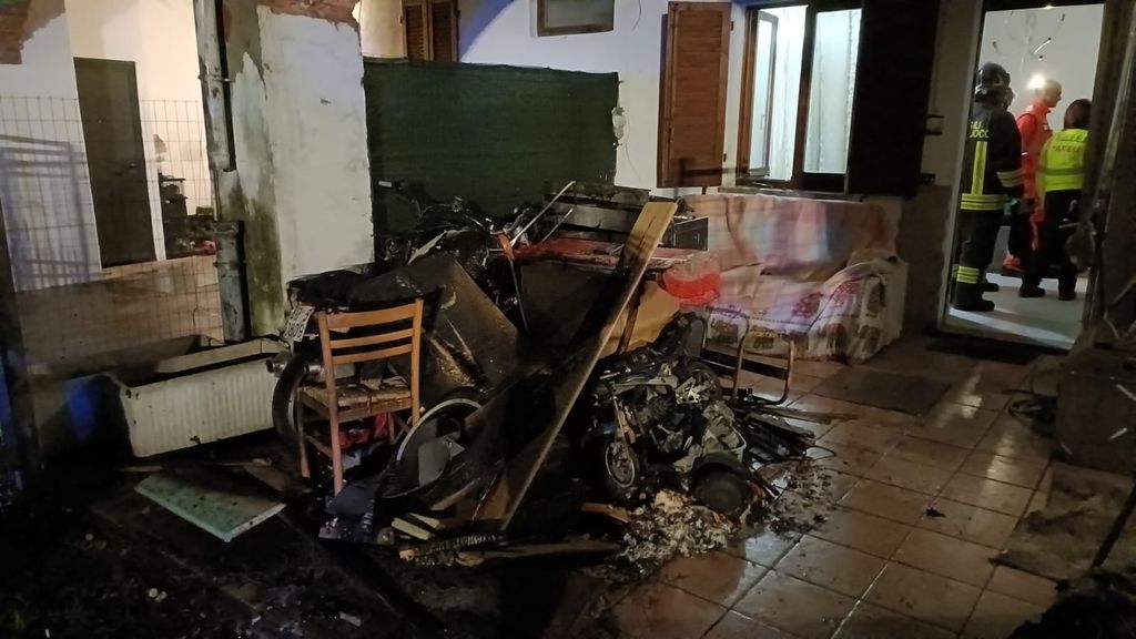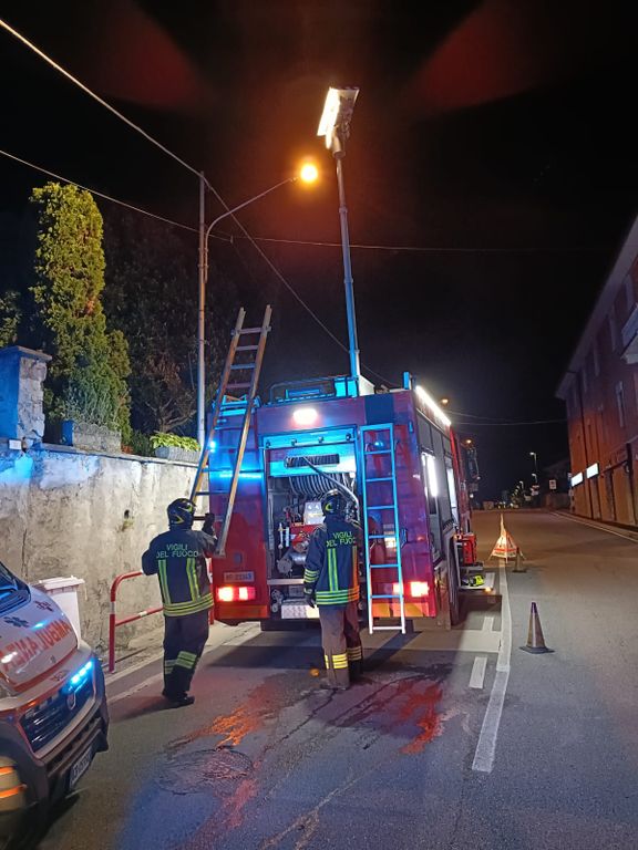 Intervento in via Como, intorno alle 2.30: il rogo ha interessato del materiale accatastato all'esterno di un'abitazione. Recuperata una persona di sesso femminile sdraiata sul divano all'interno della casa in stato confusionale