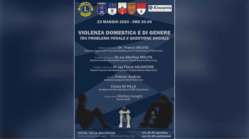 Questa sera alle 20, all’hotel Villa Malpensa di Vizzola Ticino, si terrà il convegno “Violenza domestica e di genere - tra problema penale e questione sociale”, organizzato da Lions International.