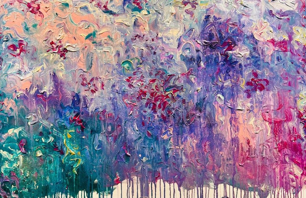 "Always in my mind: dream - breath - love" di Manuela Carnini "Fridami", è un'opera in acrilico su tela che esprime un fluire di emozioni attraverso un'esplosione di colore su una tela di dimensioni considerevoli.