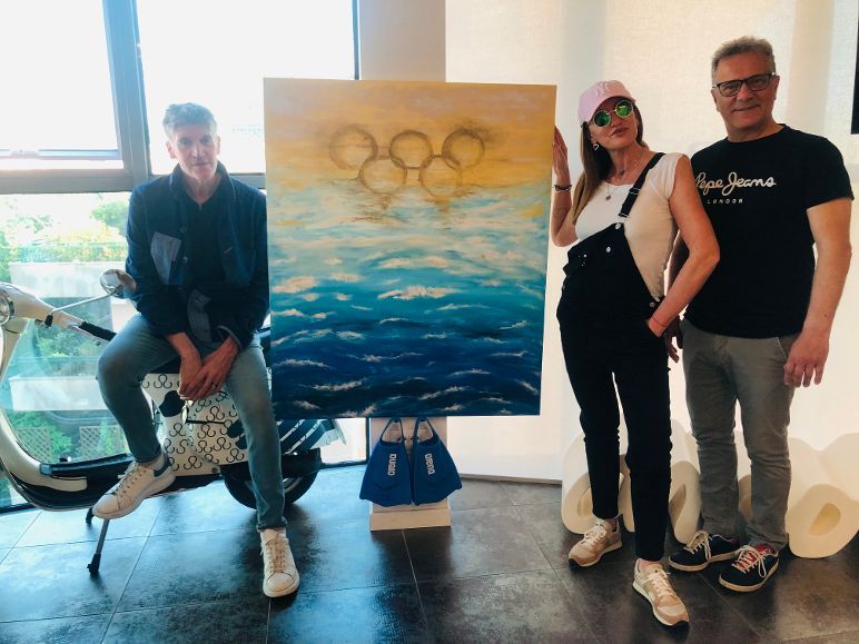 E poi quel mare increspato, simbolo di sacrificio, fatica per i duri allenamenti, i cinque cerchi come un fuoco, un miraggio con contorni indefiniti che nascono come un sole all’orizzonte e le pinne di un campione pronto a tuffarsi verso il suo sogno per prendersi ciò che si merita. «Realizzare quest’opera in antitesi con ciò che normalmente dipingo mi ha fatto rivivere le mie Olimpiadi: ricordi scolpiti nell’anima, ma soprattutto mi ha permesso di toccare con mano una mia nuova evoluzione e di attingere da quella forza per affrontare una mia prossima sfida personale», confessa.