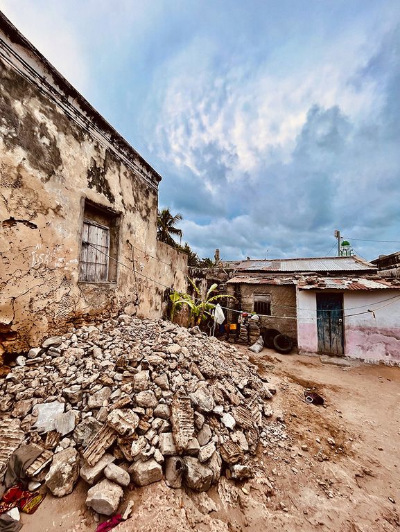 Sveglia alle 7 colazione a base di frutta e prima avventura, tour in bicicletta con guida locale. La storica fortezza portoghese cinta da mura, l’antico ospedale oggi abbandonato e la grande moschea con centinaia di fedeli in preghiera sono alcune meraviglie che ho avuto la fortuna di visitare, quasi in forma privata. Questa è una terra sconosciuta al turismo, soprattuto è un luogo dove “l’Europeo” viene associato quasi sempre al lavoro nelle ONG o nelle multinazionali. Il giorno seguente, andiamo alla scoperta della popolazione locale visitando il quartiere all’estremità sud. La maggior parte dei mozambicani vive in piccole case diroccate e addossate l’una all’altra, sotto il livello della strada principale; alcune di queste senza finestre ma stranamente con parabola e televisore, molte con tetto di paglia intrecciata e tutte con servizi igienici approssimativi. Il clima tropicale e caldo quasi tutto l’anno rende possibile, per fortuna, una vita principalmente all’aria aperta e priva di confort; la stagione delle piogge in alcuni mesi crea allagamenti che tuttavia trovano sfogo, in appositi canali di scolo risalenti al ‘700. Entriamo in un’abitazione a prendere un caffè, veramente buonissimo, accolti con gentilezza e tanto stupore; i piccoli di casa giocano sul pavimento e la mamma è impegnata nelle faccende domestiche. Il padre famiglia, all’opera nel riparare la gomma di una moto, ci racconta che proprio qui acconto si trova il vecchio tunnel utilizzato per il passaggio degli schiavi dalla città alla spiaggia, quando i portoghesi imbarcavano in segreto esseri umani come merce di scambio.