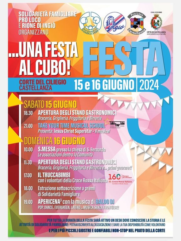 Si intitola “…Una festa al cubo!” ed è l’iniziativa proposta da Solidarietà Familiare, Pro Loco e Rione Ingiò con il patrocinio della Città di Castellanza, per il weekend di sabato 15 e domenica 16 giugno presso la Corte del Ciliegio in via San Carlo.