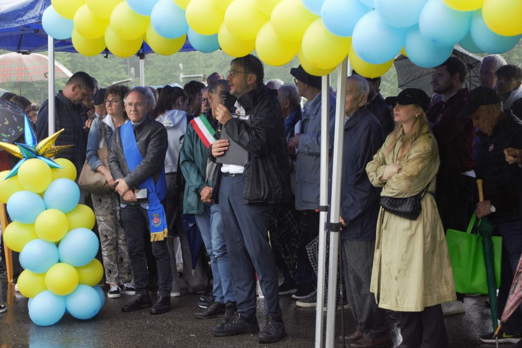 Nicola e Mauro Riva emozionati e accompagni dalle rispettive famiglie, nel loro intervento hanno più volte ribadito la loro vicinanza a Leggiuno, come luogo indimenticabile dei ricordi legati alla loro infanzia con il papà e con gli zii Paolo e Fausta.
