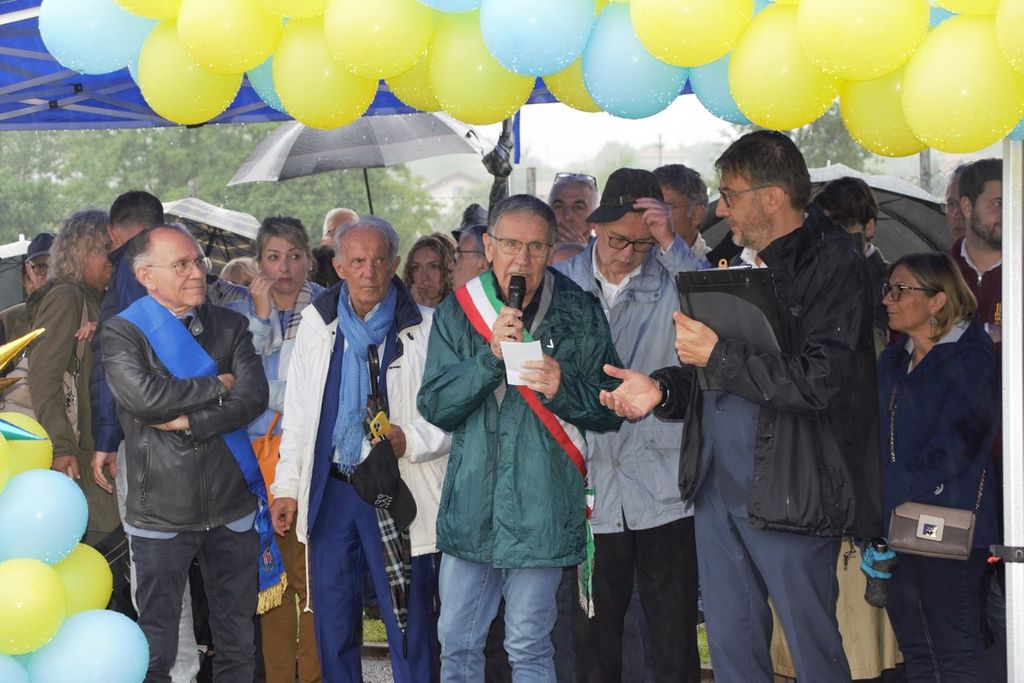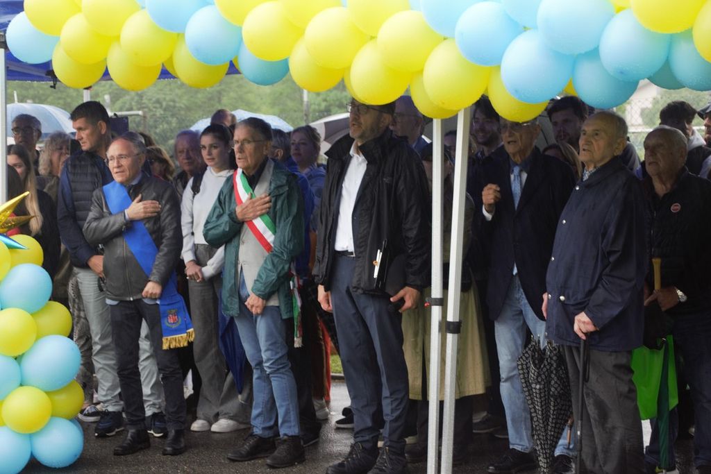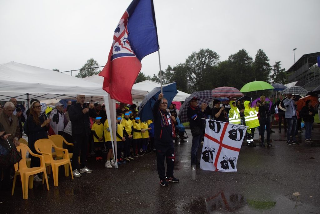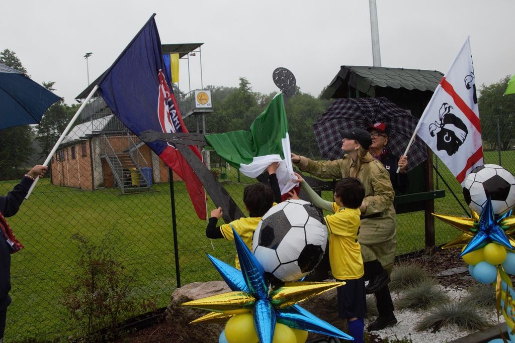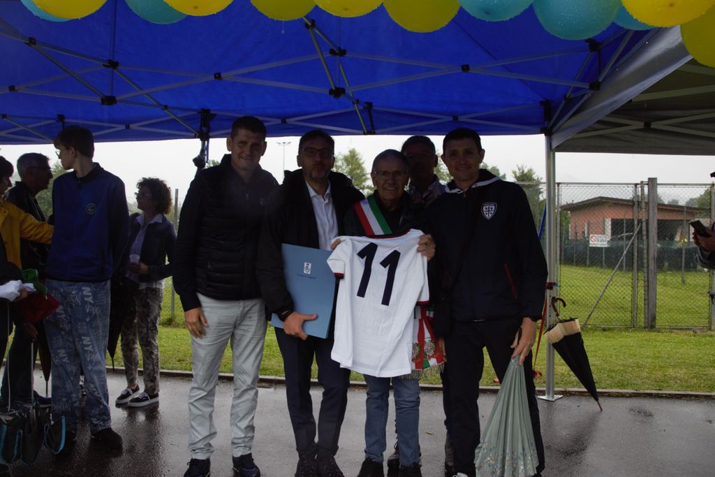 Nonostante la pioggia battente, numerose persone, compresa una delegazione di tifosi del Cagliari, ha partecipato sabato mattina alla cerimonia di intitolazione del campo sportivo di Leggiuno al grande campione di casa Gigi Riva.