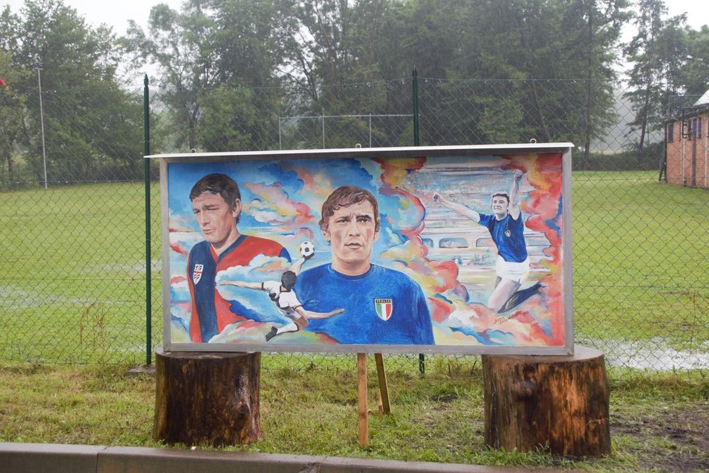 Oltre alla statua realizzata dalla ditta CM di Caravate che ha magistralmente raffigurato la famosa rovesciata storica che Rombo di Tuono fece nella partita Cagliari-Vicenza, è stata inaugurato anche il dipinto donato dal locale centro anziani e realizzato dalla bravissima artista locale Sonia Zarantonella che verrà prossimamente esposto nella zona adiacente al campetto di San Primo, il luogo che è rimasto sempre nel cuore di questo straordinario "hombre vertical".