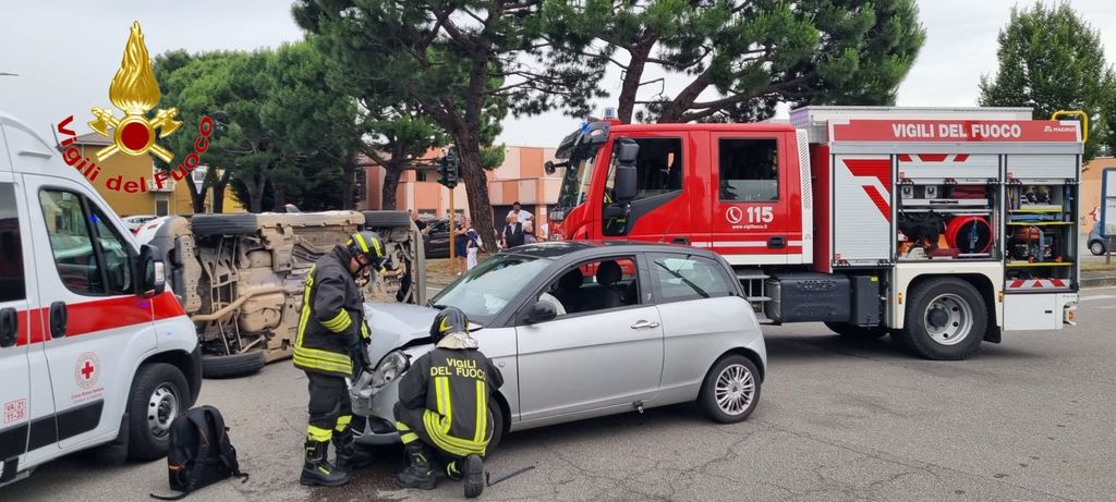 Incidente questa mattina poco dopo alle 9 all'intersezione tra via San Pio X e via Gasparoli. Sul posto ambulanza, vigili del fuoco e polizia locale: un 37enne in ospedale