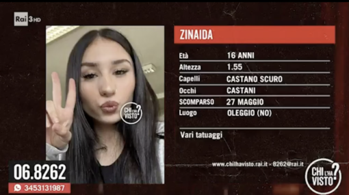Zinaida, una 16enne di Oleggio, è scomparsa da oltre 20 giorni. La ragazza è uscita di casa il 27 maggio senza documenti, portando con sé solo un cellulare ora spento. Il 19 giugno, il programma "Chi l’ha visto?" ha dedicato un servizio alla sua scomparsa, dopo che la madre aveva ricevuto una telefonata dalla figlia il giorno prima.