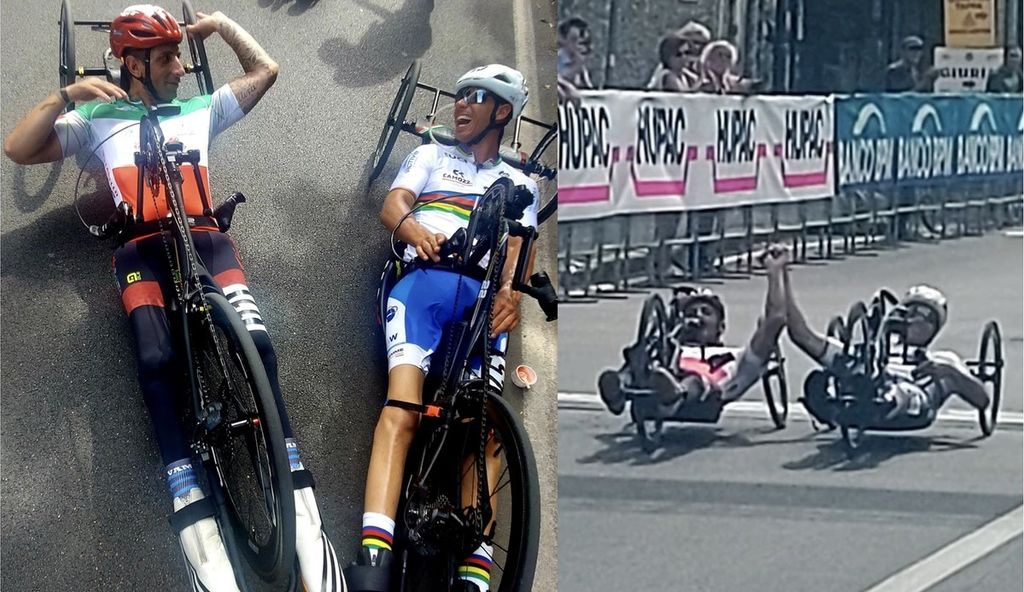 Due atleti della Tre Valli Varesine Handbike, in due gesti che trasmettono i valori profondi dello sport. Ieri hanno dato tutto a Busto per conquistare il loro traguardo (LEGGI QUI) nella manifestazione organizzata dalla società ciclistica Alfredo Binda con il Comune e aziende del territorio a partire da e-work. Chi c'era, chi ha voluto esserci e non fare la conta dei metri chiusi al traffico o borbottare a prescindere, ha potuto ammirare la loro bravura, frutto di sacrificio e costanza, di una tenacia che non può non colpire.