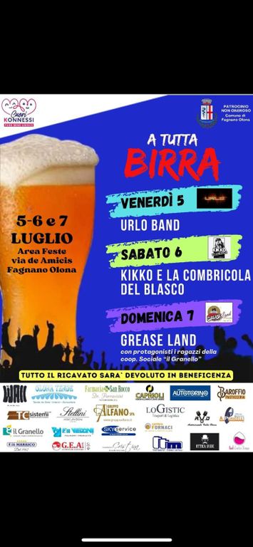 A partire da stasera, venerdì 5 luglio, va infatti in scena "A Tutta Birra" nell'area feste di via De Amicis. L'evento, patrocinato dal Comune, da una parte garantirà birra e prelibatezze al pubblico che si attende numeroso, ma non dimentica l'attenzione alle esigenze vicine e lontane nel territorio. Difatti, il ricavato servirà a sostenere la missione di Katia Colombo in Brasile, come pure il Centro aiuto alla vita.
