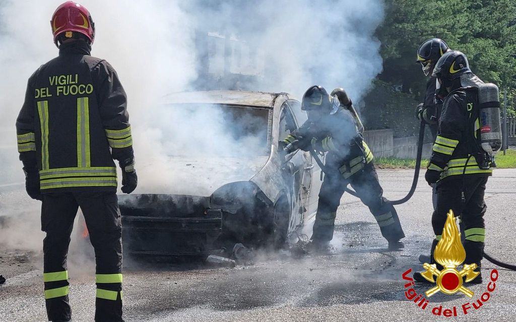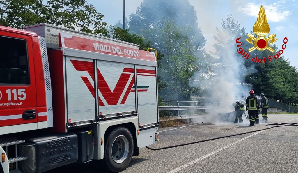 FOTO. Auto in fiamme a Lonate Pozzolo, il conducente riesce a mettersi in salvo in tempo