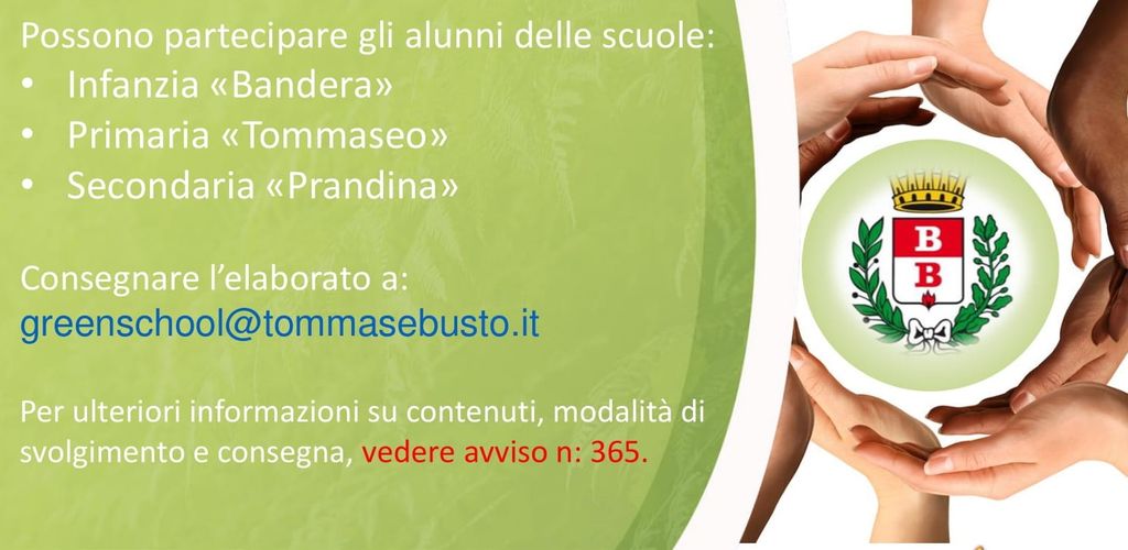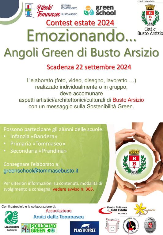 L’Istituto Comprensivo “Nicolò Tommaseo” di Busto Arsizio, nell’ambito del progetto Green School, ha promosso il Contest Estivo denominato “Emozionando … angoli Green di Busto Arsizio” con scadenza il 22 settembre, al fine di continuare a sensibilizzare l’intera comunità scolastica, con la preziosa collaborazione delle famiglie, sui temi della sostenibilità ambientale, la salvaguardia degli ecosistemi e le azioni pro-biodiversità il tutto abbinato con le discipline e i talenti dell’Educazione e la valorizzazione culturale, artistica, architettonica e identitaria di Busto Arsizio.