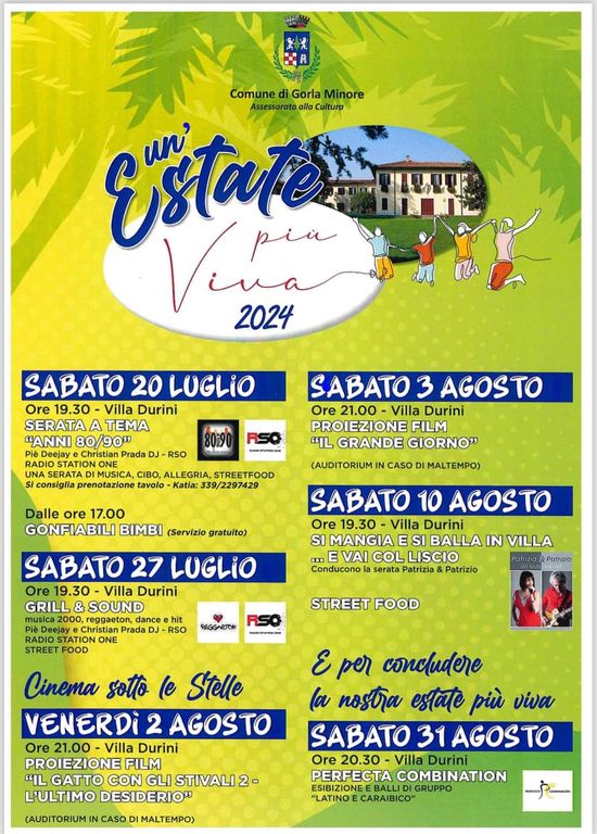 A Gorla Minore c’è solo l’imbarazzo della scelta per chi trascorrerà le prossime settimane a casa; parte questa sera, infatti, “Un’Estate più Viva”, il cartellone di eventi organizzato dall’amministrazione per ravvivare i fine settimana del mese di luglio e agosto con appuntamenti dedicati a grandi e piccini.
