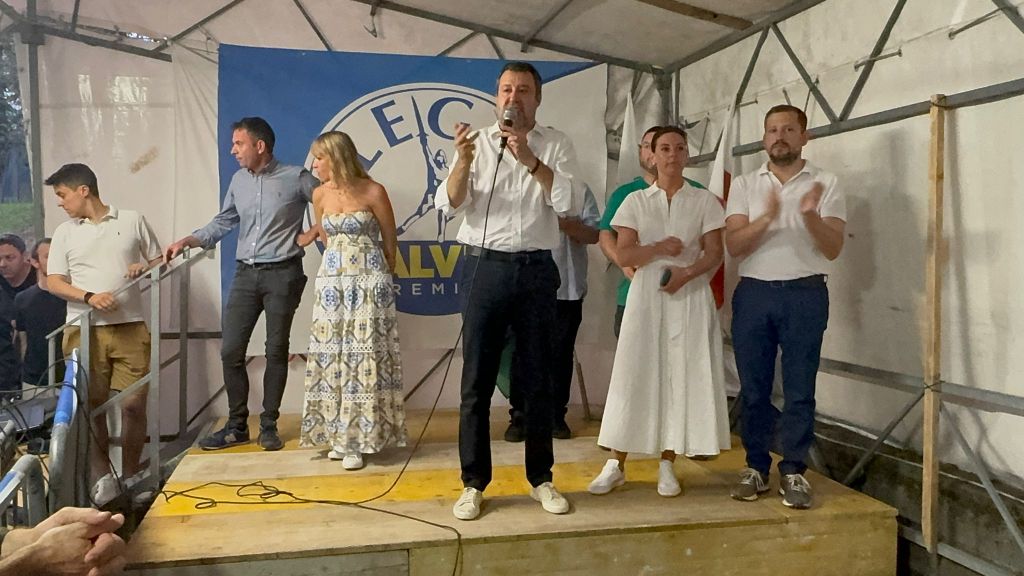 «L'Europa è la negazione della democrazia. Gli italiani, i francesi e i tedeschi hanno votato per il cambiamento ma questi se ne fregano»: lo dice il ministro di Infrastrutture e Trasporti e leader della Lega Matteo Salvini, giunto questa sera alla festa della Lega di Sumirago accolto, tra gli altri, dal segretario provinciale Andrea Cassani, dal consigliere regionale Emanuele Monti, dall'eurodeputata Isabella Tovaglieri, dal capogruppo in Senato Massimiliano Romeo ma non da Giancarlo Giorgetti, in Brasile per il G7 come ci si è affrettati a sottolineare dopo aver comunicato in precedenza la sua presenza.