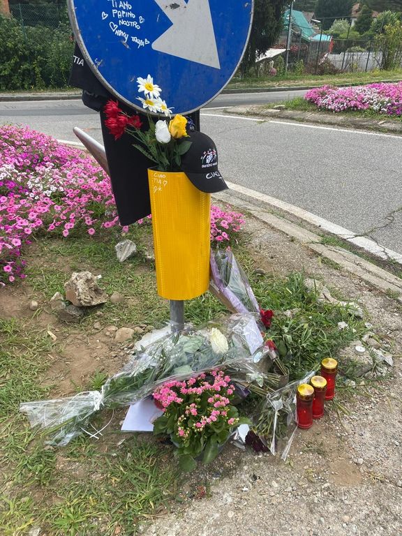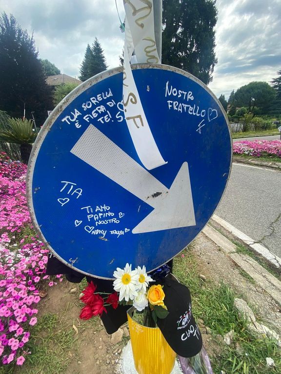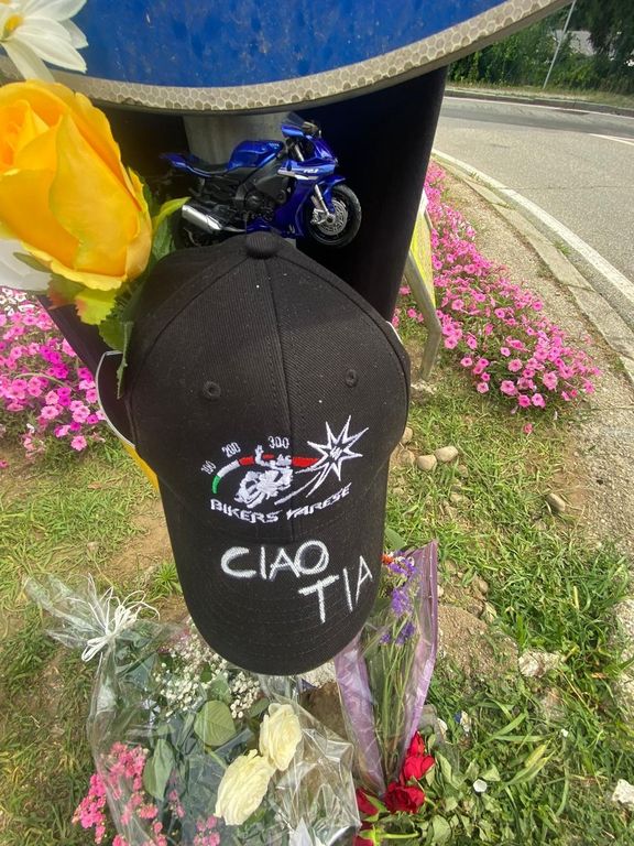 Oltre al cappellino nero dei Bikers Varese con una scritta commovente («Ciao Tia»), le margherite, una rosa bianca e una gialla, un disegnino, un braccialetto, un ultimo messaggio ancora più commovente («Ti amo papino nostro») con le firme della compagna Tania e della piccola figlia Nicole ("Tanya e Niky") vicino a tanti cuoricini, ecco un ultimo struggente dono per Tia appeso sopra il cappellino: il modellino blu della sua Yamaha che, da stamattina e tutte le mattine, non romberà più su via Matteotti in direzione Casciago.