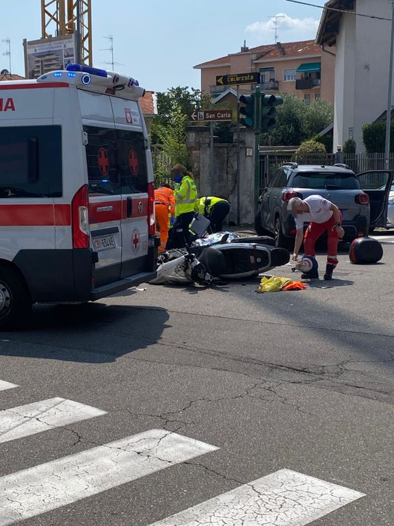 Un'auto e una moto si sono violentemente scontrate nel primo pomeriggio di sabato a Busto Arsizio: l'incidente stradale è avvenuto poco prima delle 14 in viale delle Rimembranze all'altezza di un incrocio semaforico con via Giordano Bruno.