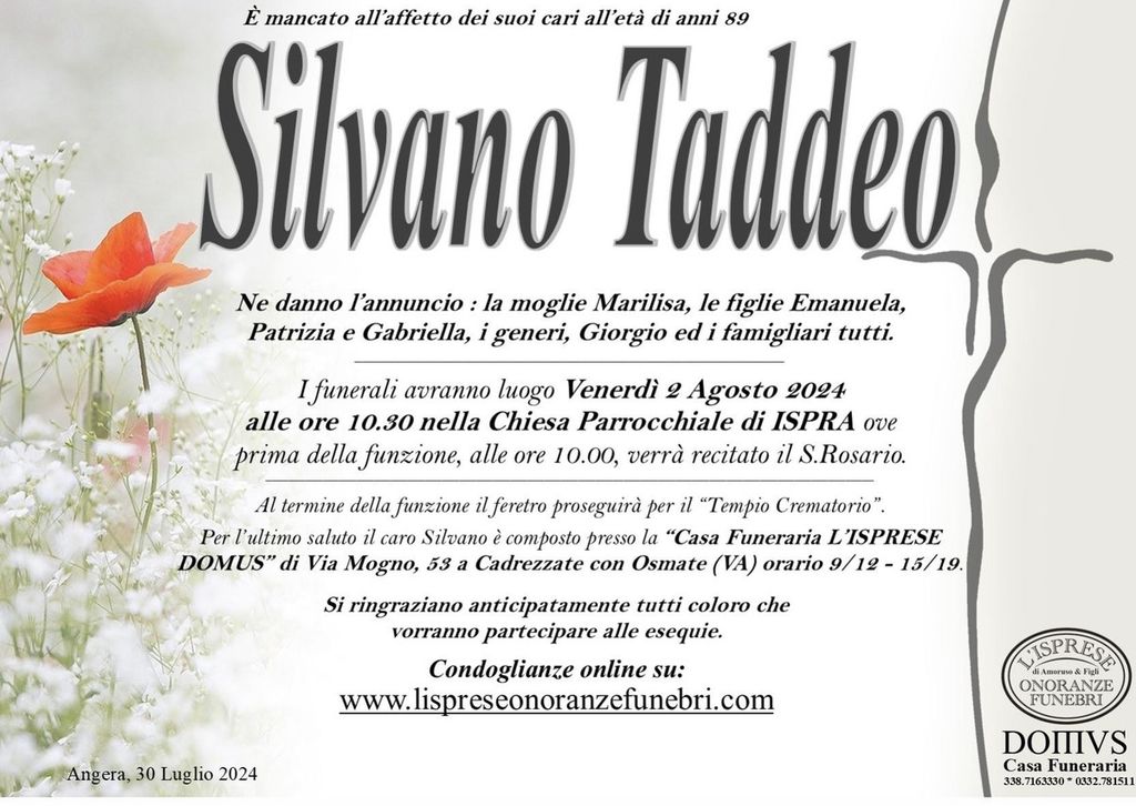 Si potrà salutare Silvano anche oggi nella casa funeraria L'Isprese Domus di via Mogno 53, a Cadrezzate con Osmate.