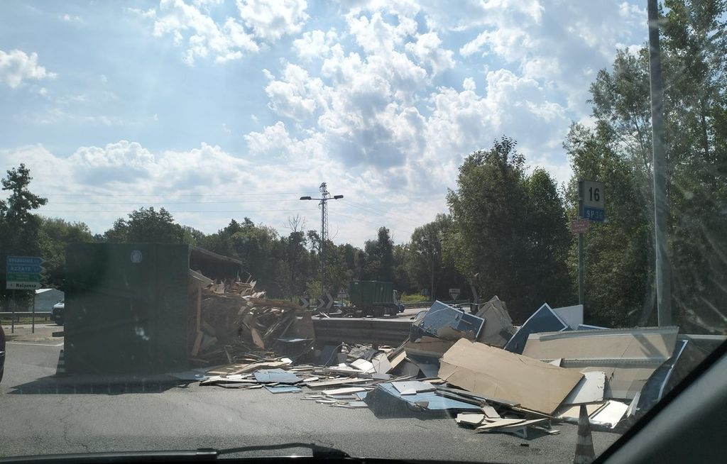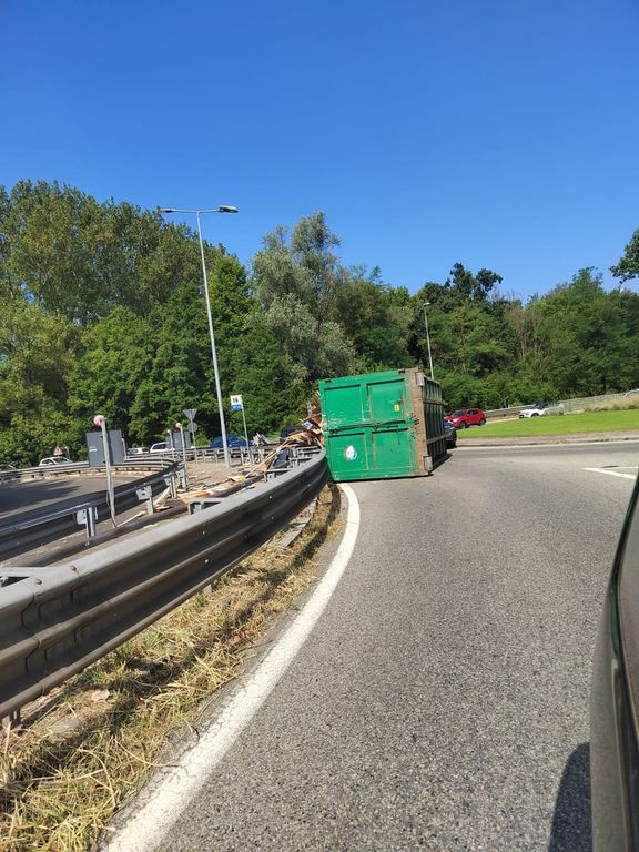 Camion perde il rimorchio: carreggiata invasa dal materiale alla rotonda di Buguggiate