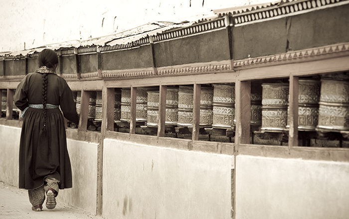 Gli abitanti possono essere scambiati per tibetani, infatti il Ladakh è spesso chiamato "piccolo Tibet". La cultura predominante è quella buddhista e il Dalai Lama visita la regione più volte l’anno. Nella quotidianità, i “ladakhi" frequentano il monastero, chiamato “Gompa”, dove fanno girare le “ruote della preghiera”; sono di forma cilindrica montate su un asse centrale, possono essere di grandi dimensioni oppure in formato tascabile. I fedeli le fanno ruotare in senso orario mentre recitano i mantra, il più famoso dei quali è "Om Mani Padme Hum”; il popolo vive la fede nel quotidiano in modo personalizzato e senza appuntamenti fissi, come accade ad esempio per l’Islam.