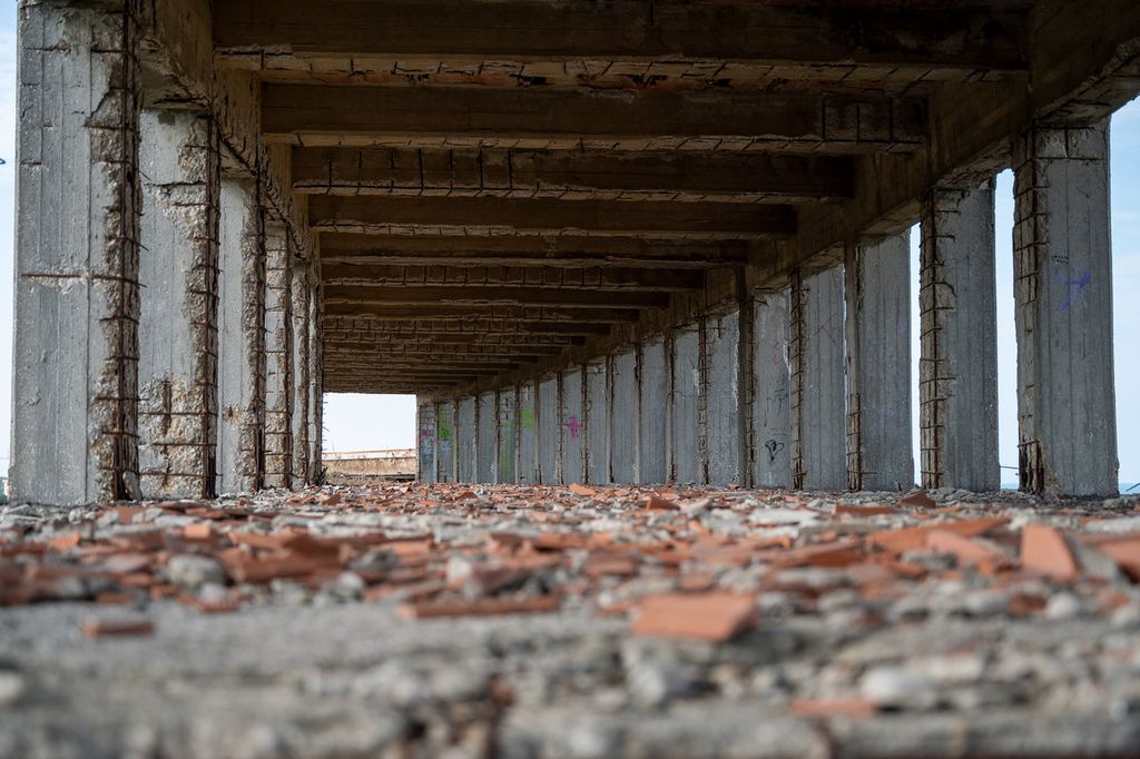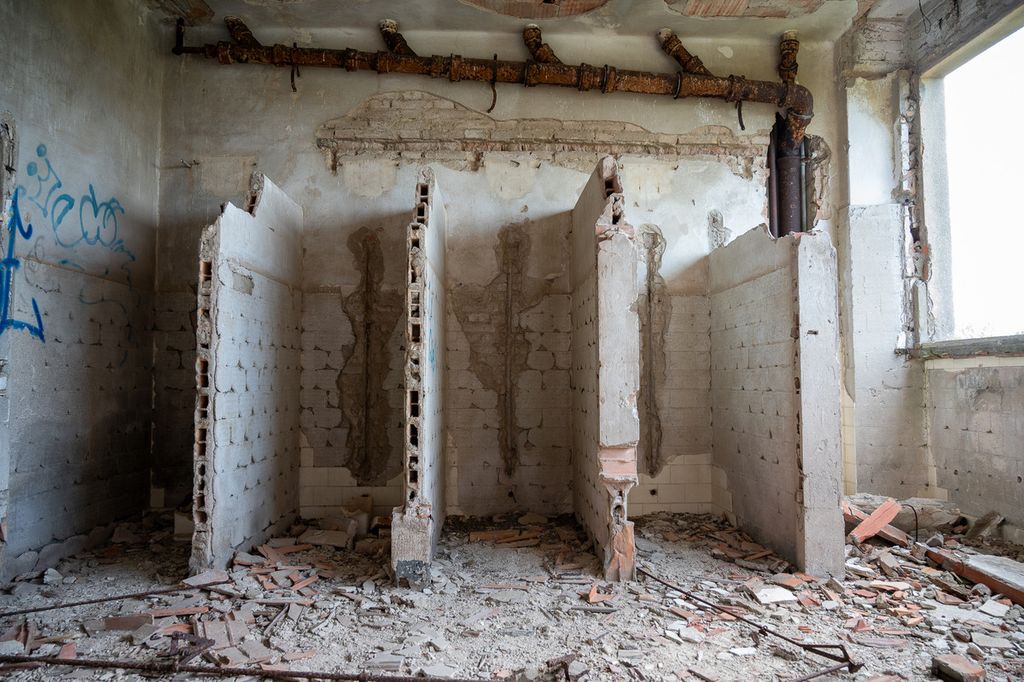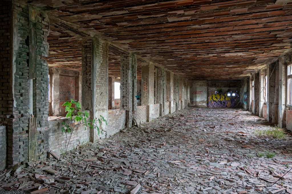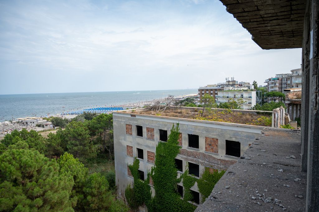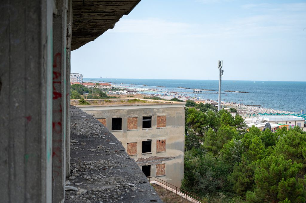 È il fotografo varesino Alessandro Galbiati a farci scoprire una struttura gigantesca, che un tempo contava anche su un Luna Park e fu adibita, dopo la chiusura nel 1941 a causa della guerra, prima come prigione dalle truppe tedesche e quindi come ospedale militare per i soldati australiani, con i viali a lato degli edifici a fare da pista di decollo e atterraggio per gli aerei della Royal Australian Air Force. Di proprietà della Regione Emilia Romagna, dagli anni ’50 è in stato di abbandono, peggiorato dopo il crollo di molte sue parti nel 2020, ma non viene demolita per il valore storico artistico, come simbolo dell’architettura razionalista del tempo.