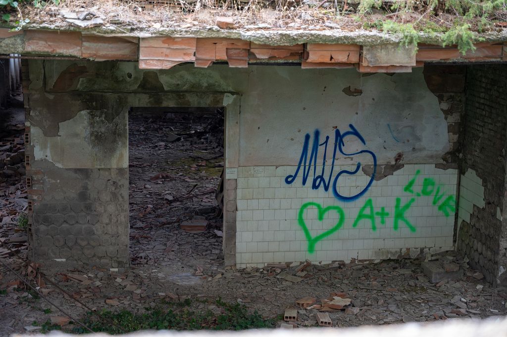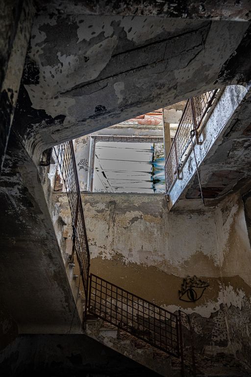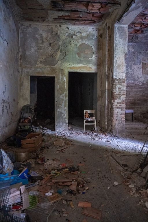Le fotografie di Galbiati mostrano la vastità degli spazi in ossequio alla grandeur imposta dal regime, porticati e corridoi, muri crollati e il ferro del cemento armato che penzola dalle pareti divelte, uno scenario perfetto per il film horror “Zeder” che Pupi Avati girò qui nel 1983. Un deserto di cemento e mattoni dove tra i bimbi nascevano amicizie e competizioni, e tra le bimbe forse l’idea di una famiglia e dei figli, in un’Italia già segnata dalla sconfitta e dall’agonia delle bombe.