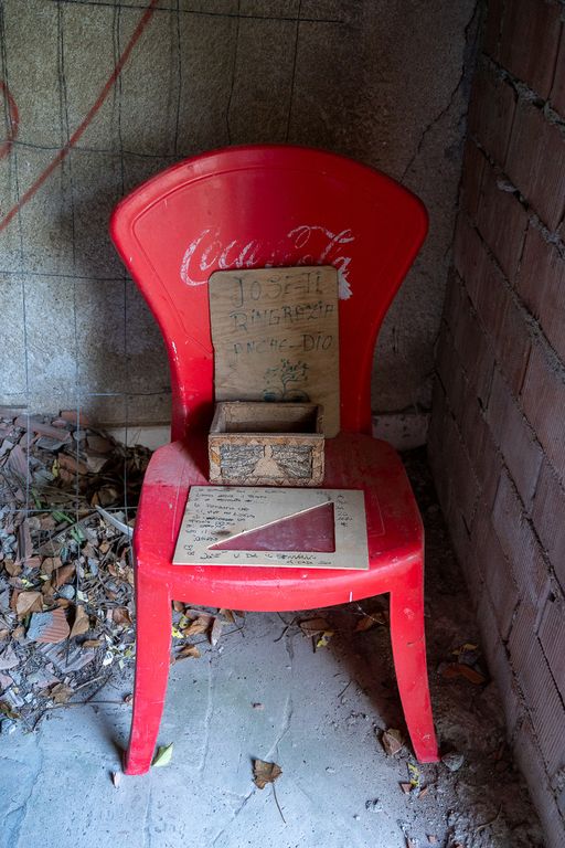 Ma nella grigia perfezione dell’architettura loretiana, il carioca Josè ha portato il colore della poesia, e pur nella povertà estrema cerca di far assomigliare il deserto a una piccola oasi, una casa che fa venire in mente quella della canzone di Sergio Endrigo e Vinicius De Moraes, «senza soffitto, senza cucina» dove «non si poteva entrarci dentro perché non c’era il pavimento». Ma Josè ha perfino incorniciato l’articolo di una sua vecchia intervista, trovato una vecchia sedia con il logo della Coca Cola e rimediato una vasca da bagno semi arrugginita, oltre alla stampa di Parigi e a una esoterica corona di ferro. Tenuto fermo da sassi e pezzi di mattone, ecco poi il quaderno degli ospiti, con le dediche e le firme di chi passa di lì per curiosità o per sfidare il pericolo di crolli: «Ciao Josè, sei mio fratello», scrive FR che firma con un cuore, e un altro ospite «sono il tuo migliore amico».