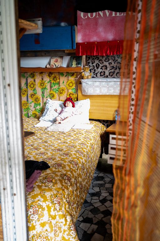 Una porta di fortuna si apre sulla camera da letto del guardiano della Colonia Varese, ogni cosa è ordinata e pulita, predomina il giallo e dietro la testata del letto ci sono girasoli stampati a dare gioia e colore, e fiori compaiono sulla coperta a giorno. José è un romantico, lo si vede dagli occhi, e sul cuscino ha posato un bambolotto con un cappello rosso, forse il simbolo di un lontano desiderio di paternità. Non ci sono più bambini a cinguettare nella pineta di Cervia, ma uno di loro, grande e solo, ne custodisce ogni giorno i sorrisi.