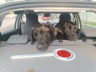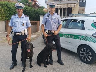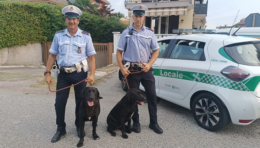 L’intervento degli agenti ha evitato che i due labrador potessero farsi male o creare pericoli agli automobilisti in transito in via Samarate