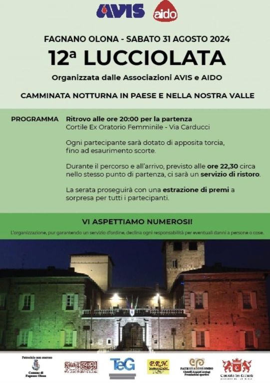 Anche quest’anno, per permettere a tutti di trascorrere in modo diverso e piacevole l’ultimo fine settimana di agosto, torna a Fagnano Olona l’appuntamento con la Lucciolata, la tradizionale camminata notturna organizzata dalle sezioni locali di Avis e Aido.