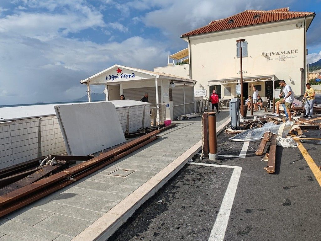 I Bagni Sirena, il Bar La Playa, i Veretium e i Marina Piccola sono stati tra i più colpiti: le cabine e le strutture dei dehors sono state letteralmente travolte dalla furia del vento. In particolare, alcuni componenti delle strutture distrutte sono stati trascinati fino alla vicina linea ferroviaria, causando inevitabilmente disagi alla circolazione dei treni.
