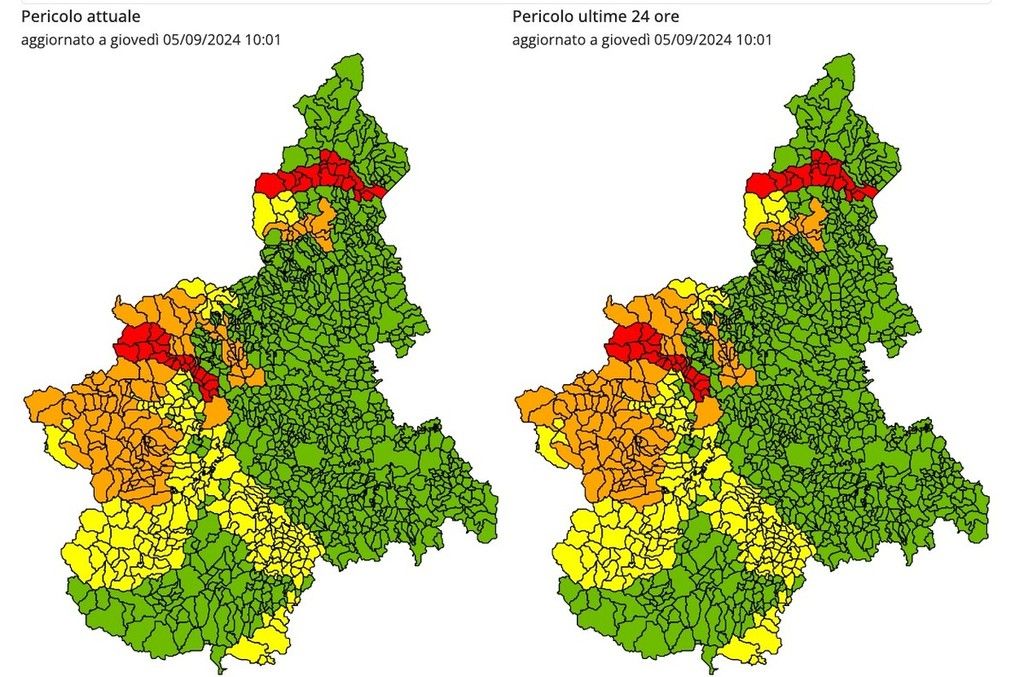Nelle Valli di Lanzo la Stura ha superato a Mezzenile il livello di pericolo idraulico del torrente, a Lanzo e Cantoira superato il livello di guardia.