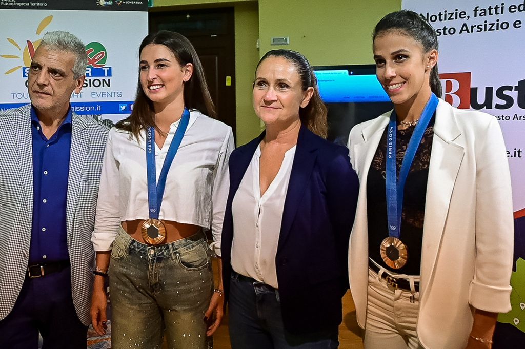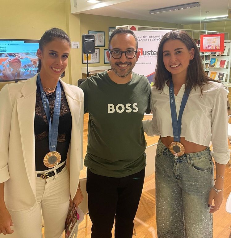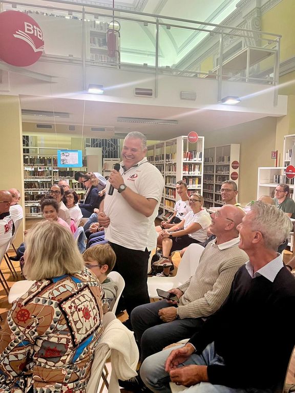 Dopo gli interventi della vicesindaco e assessore alla Cultura Manuela Maffioli e dell’assessore allo Sport Maurizio Artusa, si sono alternati sul “palco” della Sala Monaco in biblioteca i giornalisti Franco Bonera e Alberto Cerruti, il karateka oro olimpico a Tokyo 2020 Luigi Busà e il giornalista Marco Cattaneo con le due medaglie di bronzo nella ginnastica ritmica ai Giochi di Parigi 2024 Martina Centofanti (già sul terzo gradino del podio a Tokyo 2020) e Laura Paris.