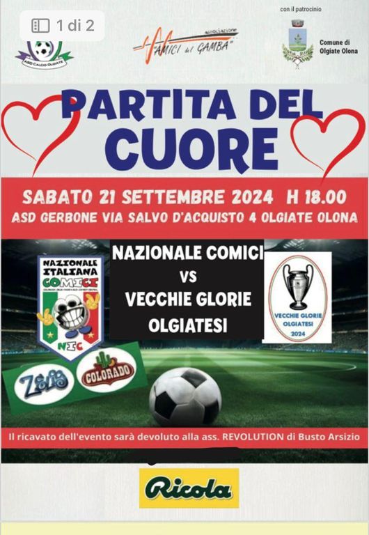 Ma il torneo organizzato dall’associazione non sarà l’unico appuntamento previsto per sabato 21; alle 18, infatti, il centro Gerbone ospiterà l’attesissima “Partita del cuore”, che vedrà la Nazionale Italiana Comici scontrarsi con le vecchie glorie dell’olgiatese, in un match che saprà sicuramente far fare un tuffo nel passato, affascinare e divertire i presenti.