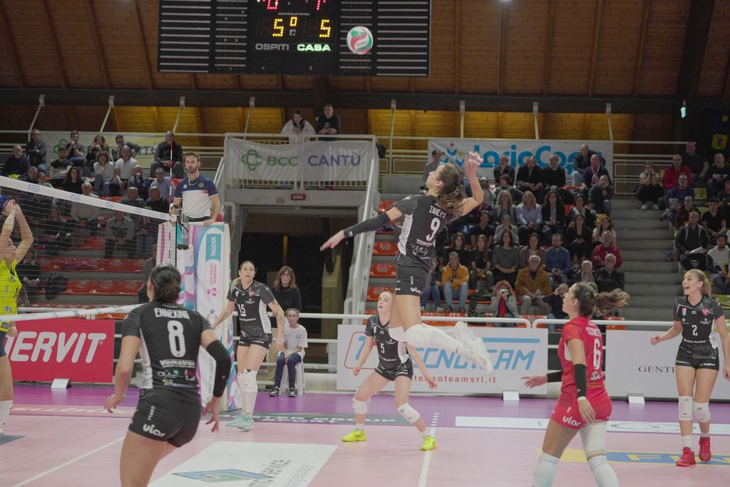 Busto Arsizio tiene la testa avanti con Zanette (21-20), Grigolo attacca out (22-20), Zanette e Rebora murano la stessa Grigolo per il 24-20 con la capitana biancorossa che mette a terra la palla della vittoria. Parziali: 6-5, 8-9, 14-13, 17-17, 22-20, 25-21. Zanette 6; Longobardi 9.