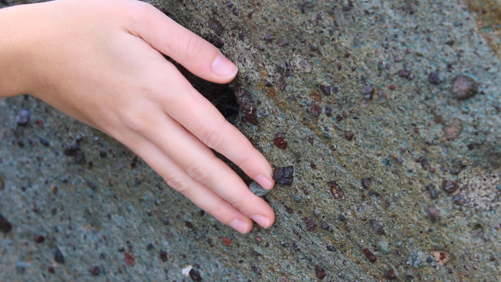 La prima, dalla quale deriva il titolo della mostra Tra i solchi, tenero sentire, è un lavoro ambientato in Sardegna, luogo d’origine dell’artista che comprende una selezione di fotografie e un video. Protagonista è la natura di questo aspro territorio, in cui le texture cangianti si fondono con il gesto, quasi performativo, dello sfiorare. Alternando le svariate epidermidi ecosistemiche, si entra nella ripetizione di un gesto tenero, ragionato, che cerca di instaurare una relazione con la superficie degli elementi naturali.