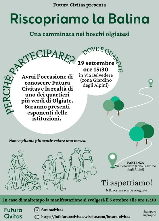 L’invito per la cittadinanza olgiatese è quello di raggiungere i membri del gruppo in Via Belvedere, in prossimità del Giardino degli Alpini, da cui partirà una passeggiata nelle vie, nelle strade bianche e nei boschi del quartiere Balina.