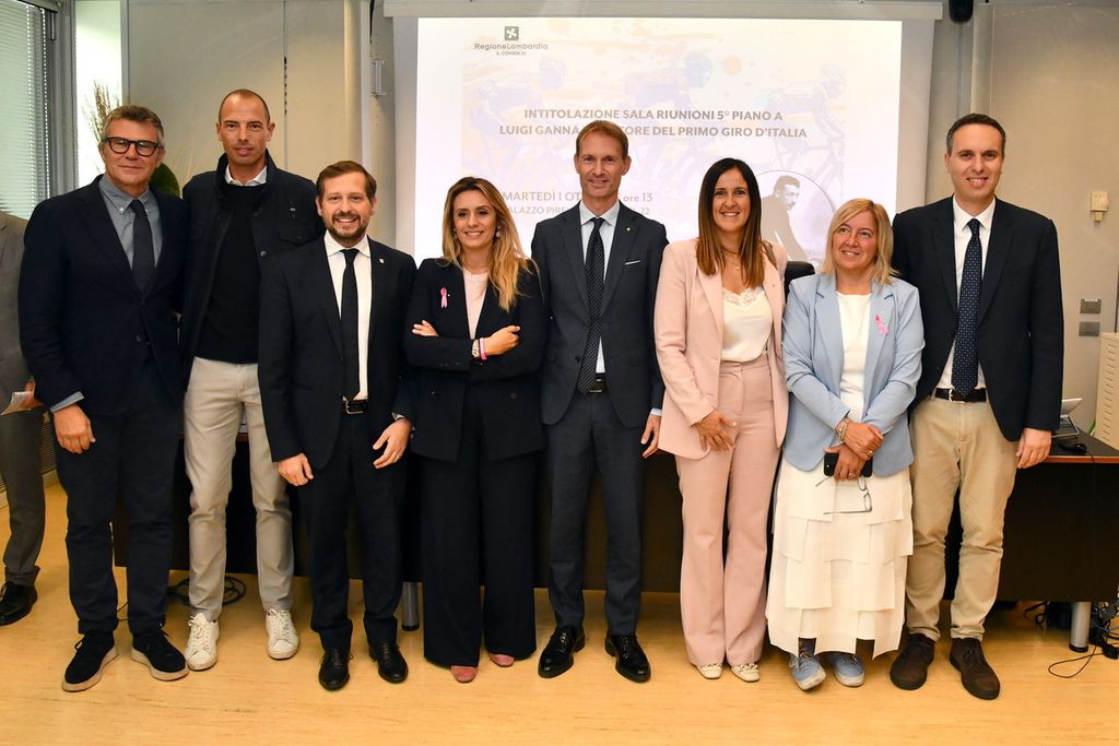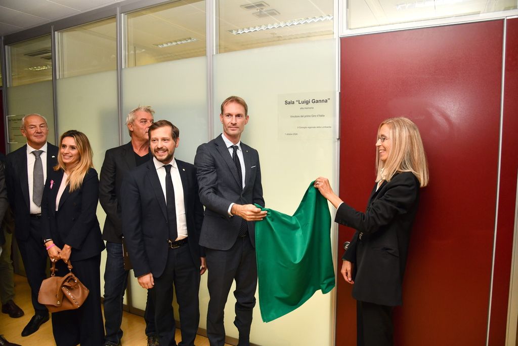 “Oggi è stata intitolata la Sala 5 del quinto piano di Palazzo Pirelli, sede del Consiglio regionale della Lombardia, a Luigi Ganna, il primo vincitore del Giro d'Italia e simbolo indiscusso dello sport italiano. Questo evento è un tributo non solo alla straordinaria carriera di un campione, ma anche al legame profondo che Ganna ha sempre avuto con la sua terra natale, la provincia di Varese, e con i valori dello sport come disciplina e prevenzione” ha dichiarato il consigliere della Lega e Presidente della Commissione Welfare del Consiglio regionale della Lombardia, Emanuele Monti, presente all’inaugurazione.