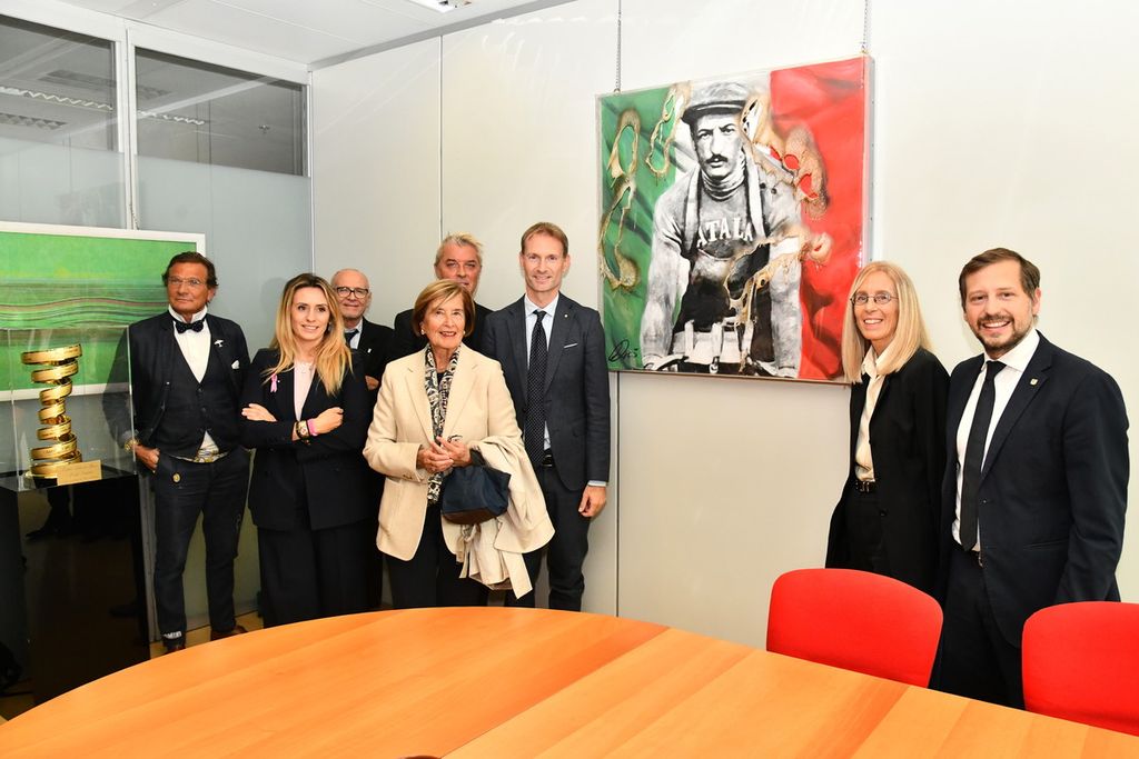 Nella sala al quinto piano del Pirellone è stato posizionato il Trofeo “Senza Fine” - 37 esemplari in tutto il mondo - il secondo postumo dopo quello di Marco Pantani, realizzato da La Gazzetta dello Sport e RCS Sport e consegnato ai nipoti di Ganna durante l’ultimo Giro d’Italia, nella tappa lombarda di Livigno.