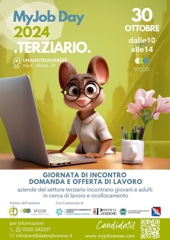 «Il successo delle precedenti edizioni e le immutate difficoltà delle aziende nel reperire personale da formare e inserire», spiega Giuseppe D’Aquaro, presidente dell’Ente Bilaterale Terziario della provincia di Varese, «ci hanno spinto a riproporre il MYJOB DAY. L’obiettivo resta quello di favorire l’incontro tra domanda e offerta». Confermato un occhio di riguardo ai giovani: «Offriamo agli studenti l’occasione di avere un primo approccio con un colloquio di lavoro, senza escludere la possibilità per alcuni di loro di iniziare un percorso occupazionale».