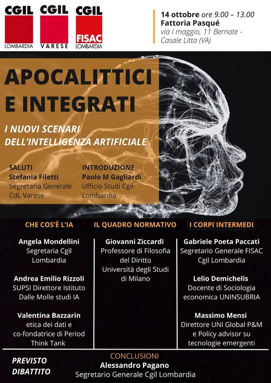 Il seminario, curato dall’Ufficio Studi della Cgil Lombardia, vuole offrire uno sguardo il più possibile oggettivo e approfondito sull’Intelligenza Artificiale, per andare oltre i pregiudizi radicalizzati che preannunciano scenari apocalittici o la identificano come panacea di ogni problema attuale.