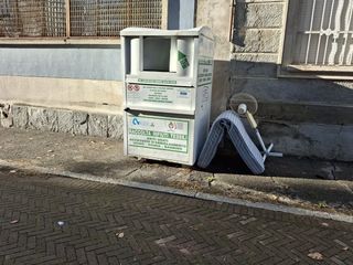 Resistono lì. Non lontano ci sono panchine disastrate e inutili, trasferite tempo fa dal centro cittadino (sotto di esse si accumula sporcizia di vario genere) e un’area verde dalla quale affiorano una ruota di bicicletta (anche questa raminga, nell’arco di almeno un mese è stata appoggiata a diversi cestini della spazzatura fino a trovare riparo sotto a un albero), qualche rimasuglio vegetale dovuto a sfalcio, un paio di rami di diverso calibro. Ma, di nuovo con Renzo Arbore, il materasso è di più, «…il materasso è il massimo che c'è».