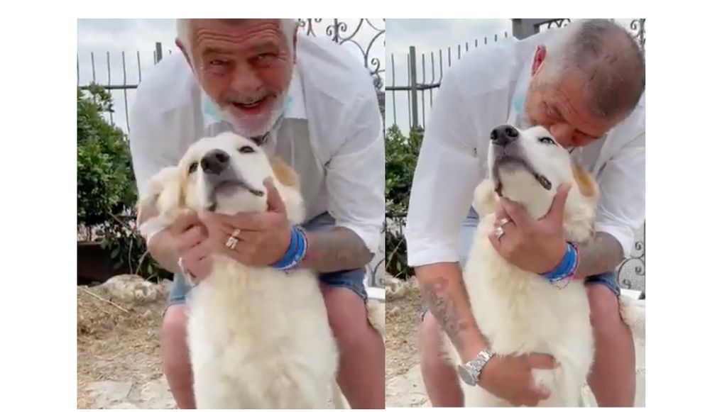 Enrico che tornava a casa, accolto a suon di feste dal suo Thiago. L'immagine dell'ex sindaco di Samarate Puricelli e del suo cagnolone è nel cuore di tanti.