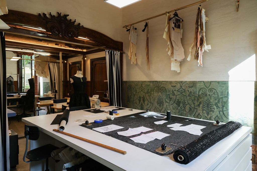 In una palazzina ottocentesca, proprio al centro della via simbolo del lusso, in cima a una scala stretta, si apre la porta che conduce all’atelier Curiel, un luogo che profuma di altri tempi. La casa da poco ha raddoppiato il suo spazio e nella nuova ala i lavori di ristrutturazione hanno portato alla luce, sotto una vecchia boiserie, dei magnifici affreschi.