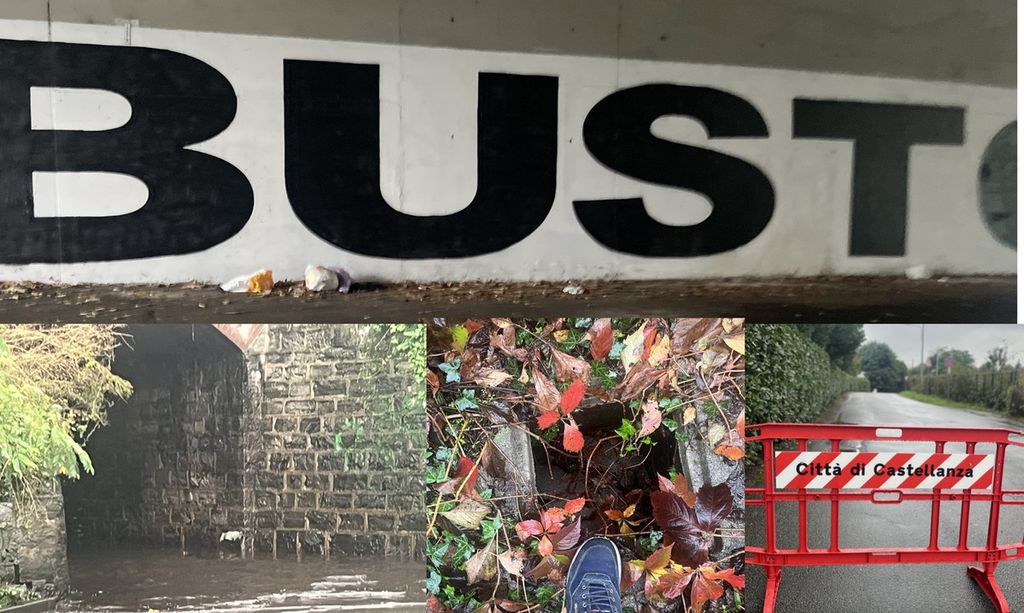 Attorno, emerge anche un senso di tristezza e anche qualche pericolo. Raccogliamo l'invito di un lettore e percorriamo una prima zona nelle vicinanze. Venendo da via Castellanza, ci accorgiamo sul bordo erboso che la presenza di bottiglie di plastica o cartacce (seminascosta dai colori autunnali delle foglie a terra) è un problema, ma non il più grave. Ci sono infatti due specie di tombini scoperti. In un caso, è stato ficcato di traverso un ramo a mo' di avvertimento, nell'altro lo spazio è a portata di caduta: non sono profondi, il rischio di farsi male però c'è tutto. Sacchi vengono anche abbandonati beffardamente sotto la scritta "Busto" nell'altro sottopasso.