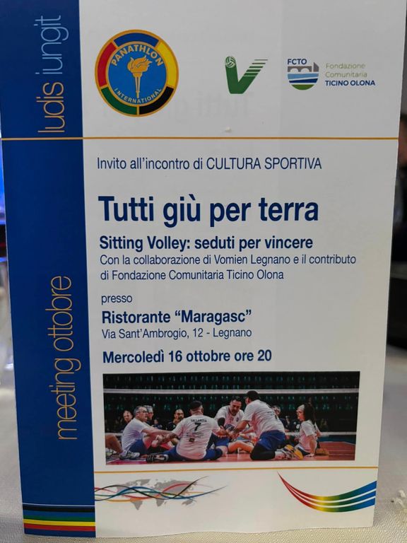 Ieri (mercoledì 16 ottobre) si è tenuta al Ristorante “Maragasc” di Legnano la conviviale di ottobre del Panathlon Club La Malpensa. Tema del meeting mensile il sostegno concreto all’attività sportiva della Vomien Legnano declinato nel contributo che la Fondazione Comunitaria Ticino Olona ha riconosciuto attraverso la sponda associativa del sodalizio panathletico del Presidente Sergio La Torre.