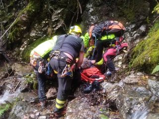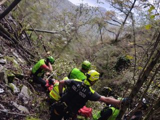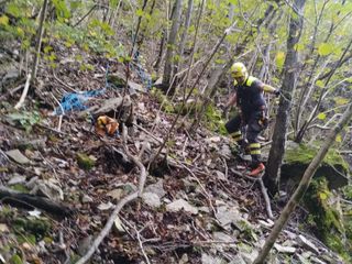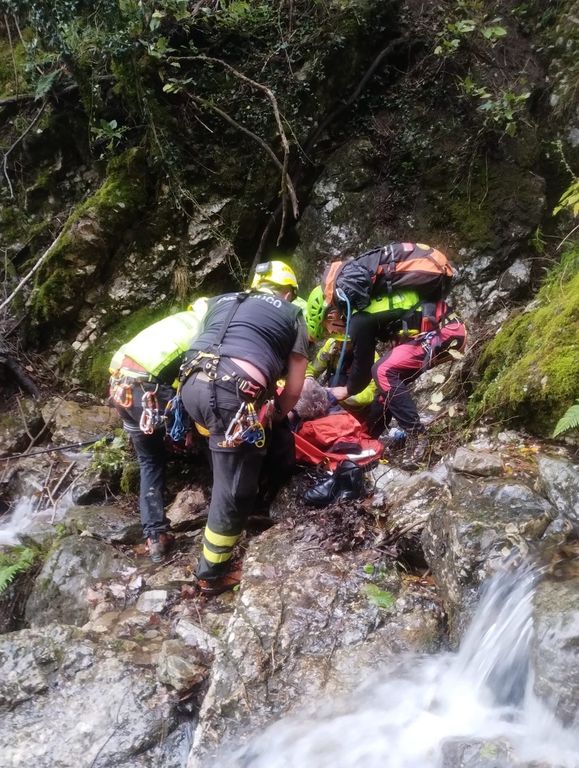 VIDEO E FOTO. Scivola in un dirupo per venti metri e si ferisce ad una gamba. Soccorsi in azione a Castelveccana: in volo anche l'elicottero