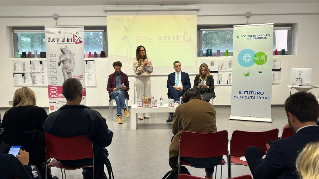 «La bellezza vive in ogni storia». Così esordisce Andrea Crespi, padre creativo dell’opera che campeggia sulla locandina di Duemilalibri. Questa mattina, 23 ottobre, il Museo MA*GA di Gallarate ha ospitato la conferenza stampa che ha ufficialmente inaugurato il festival del libro e dell’autore, alla presenza di figure chiave della cultura e delle istituzioni: Francesca Caruso, assessore regionale alla Cultura; il sindaco Andrea Cassani; l’assessore comunale Letizia Mazzetti e il curatore dell’edizione 2024, Alessandro Barbaglia.