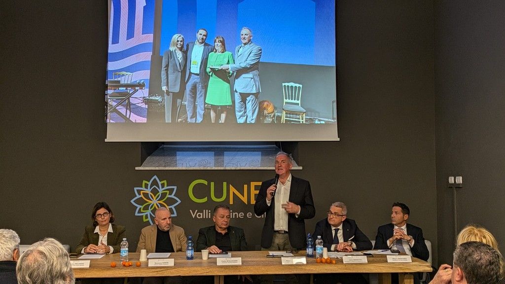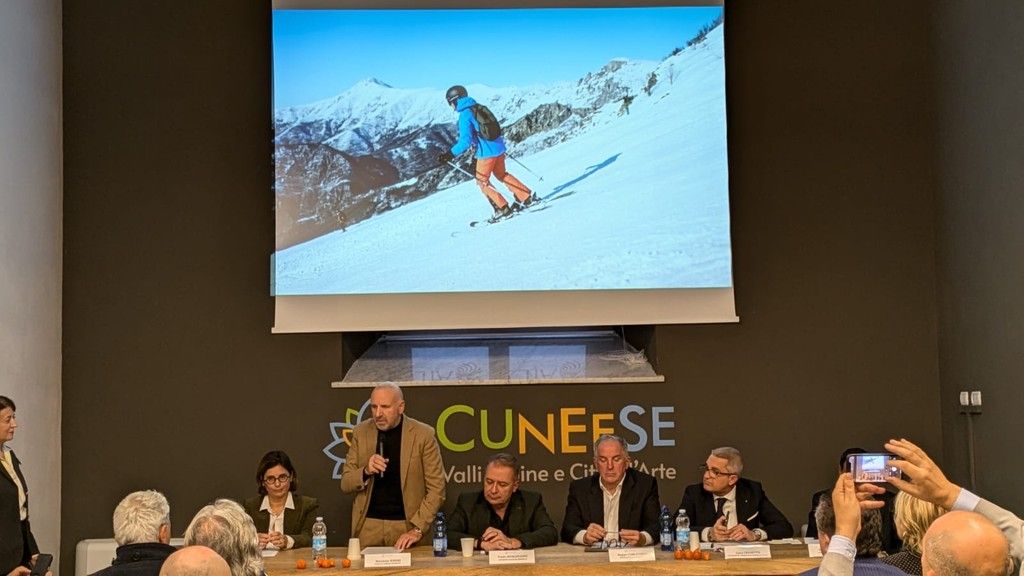 Il progetto “Ski Route Montagna Cuneese Inverno 2025” - sostenuto da Camera di commercio di Cuneo, ATL del Cuneese ed Ente Turismo Langhe Monferrato Roero - è stata presentato ieri, 21 ottobre, presso la sede ATL di Cuneo alla presenza dell’Assessore regionale Paolo Bongioanni (Commercio, Agricoltura e Cibo, Caccia e Pesca, Parchi), del Presidente della Camera di commercio di Cuneo, Luca Crosetto, del Presidente del C.d.A. di Visit Piemonte, Beppe Carlevaris; del direttore di Cuneo Airport, Anna Milanese; dei presidenti delle ATL del Cuneese e Langhe Monferrato e Roero, Mauro Bernardi e Mariano Rabino, di Danilo Turletto di ITAKA, del sindaco di Limone Piemonte, Massimo Riberi e Antonella Zanotti AD della società impianti di Limone LIFT.